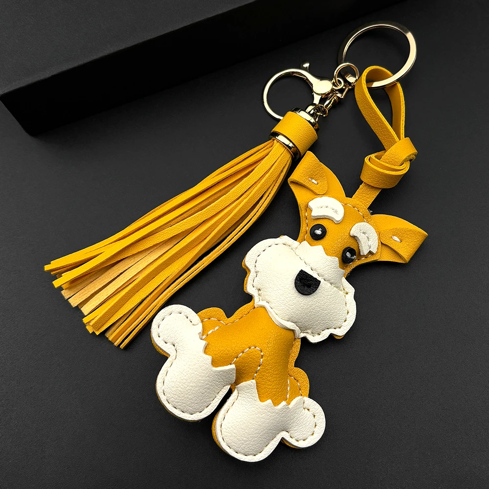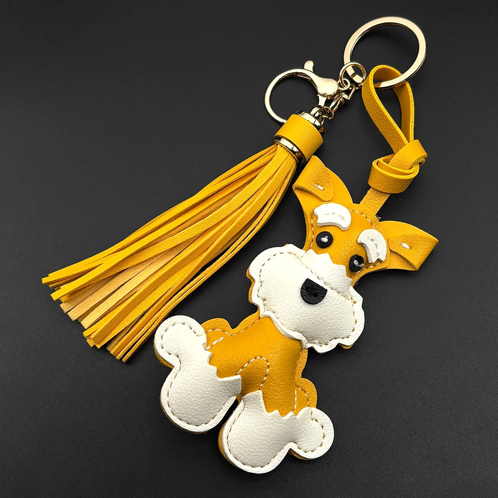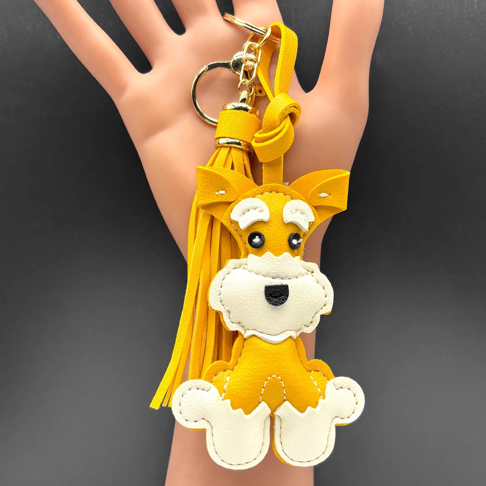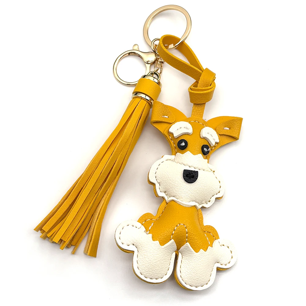 - Yellow Schnauzer Dog Keychain Tassel Pu Leather Animal Bag Pendant Handbag Charm Puppy Doggie Keyholder Jewelry Gifts