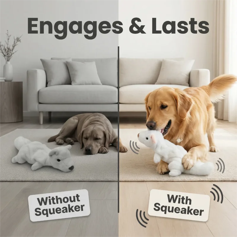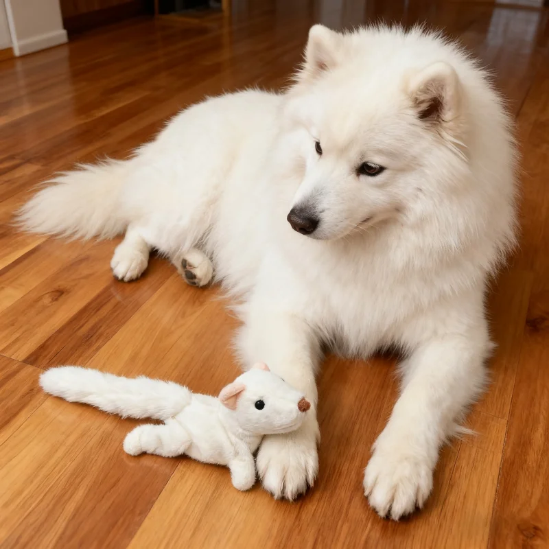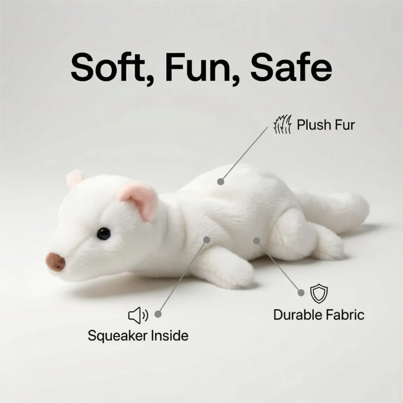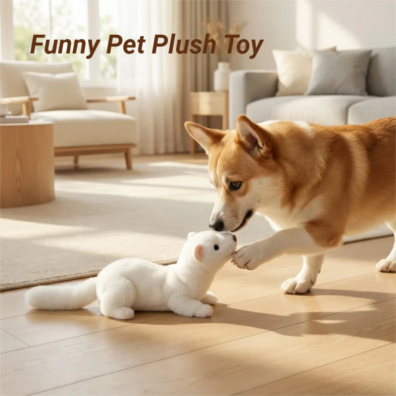 Cute White Mink Shaped Squeaking Pet Plush Interactive Toy With Paper Noise, Fun To Make Sound, Suitable For Small Dogs And Cats