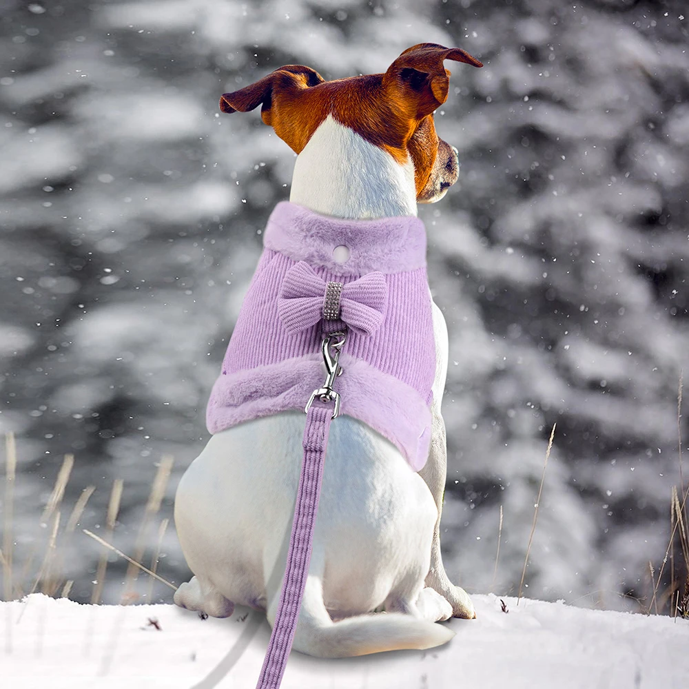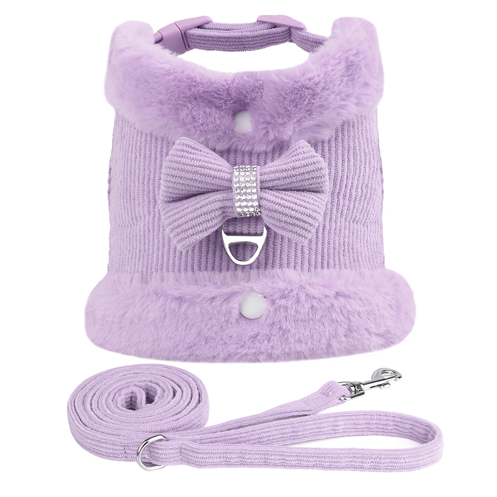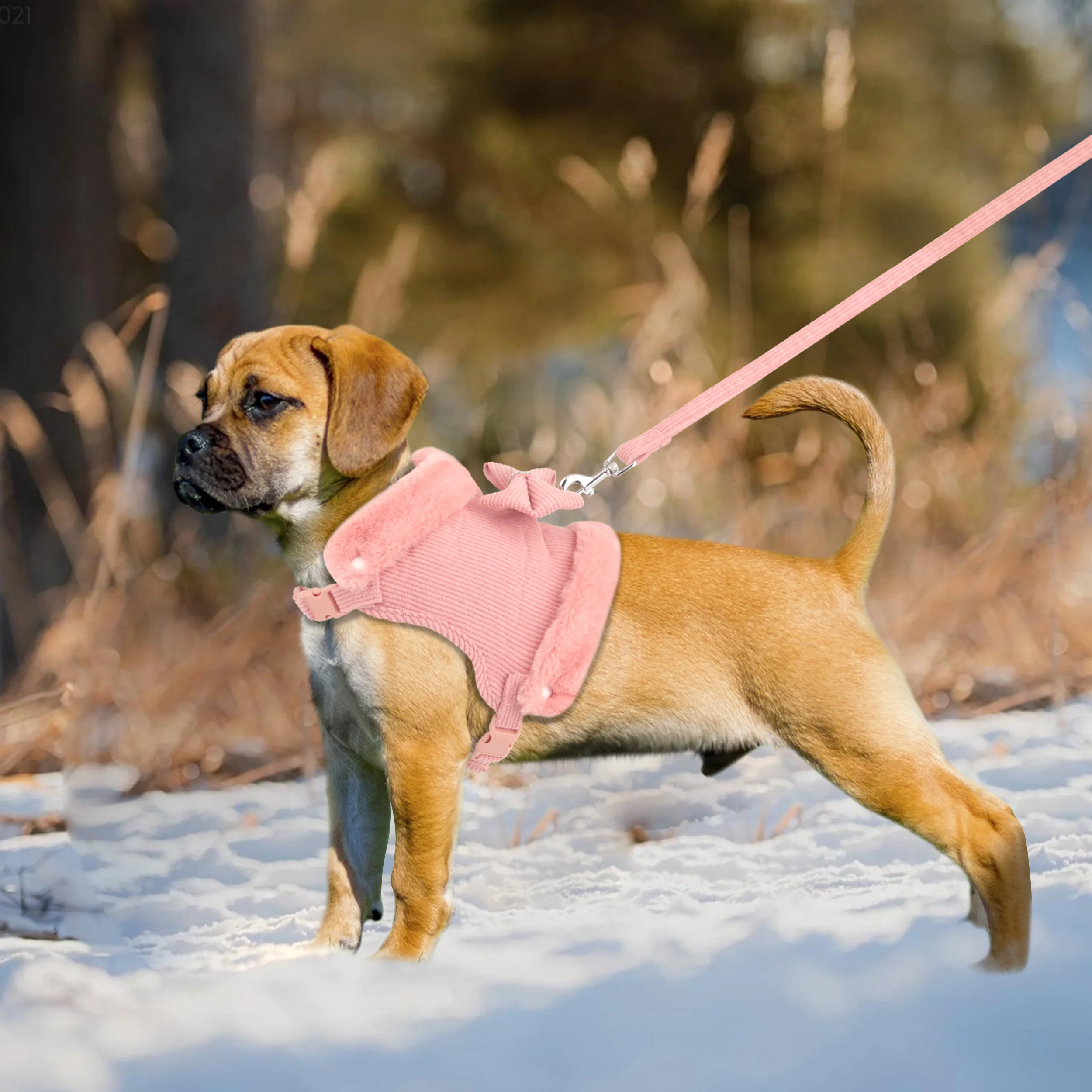 Soft Warm Dog Harness Leash Set Cute Chihuahua Yorkie Small Dog Cat Harnesses Vest Clothing With Bowknot for Pug French Bulldog